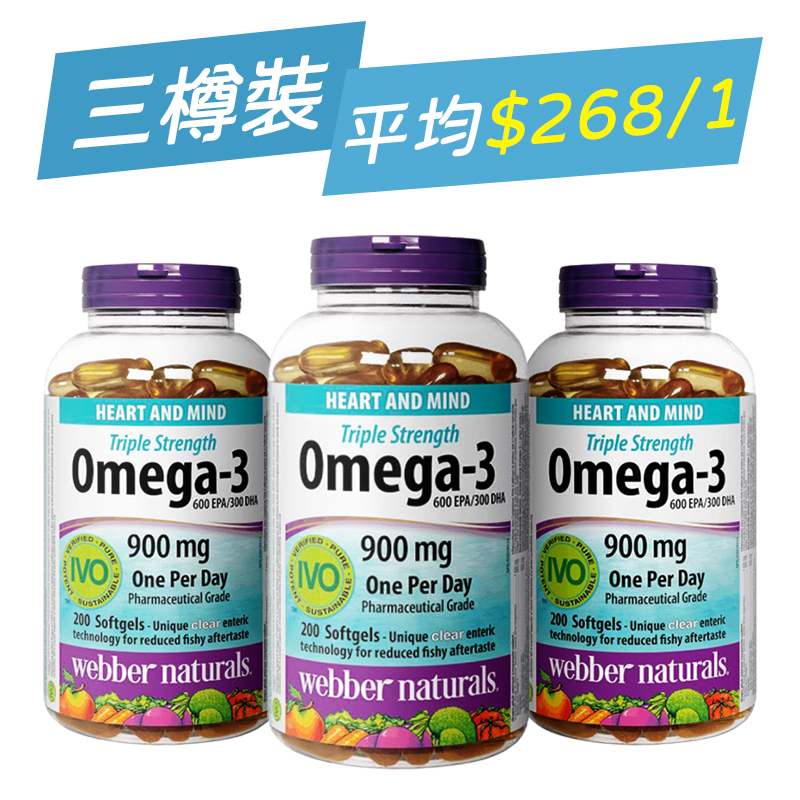 【平均$268/1】維柏健 – 三倍強效 Omega-3 (900 毫克 EPA / DHA) 200粒超值加量裝 x 3樽 共有 29 則評價